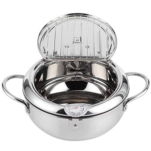 Japansk Stekpanna, Fritös, Stekpanna i Rostfritt Stål, Tempura Stekpanna med Termometer, Induktionshäll, Kompatibel för Stekning och Matlagning (Liten storlek 20 cm)