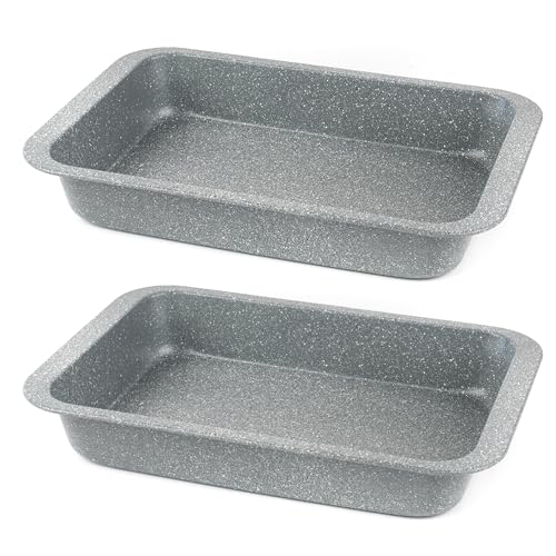 Salter COMBO-8051A marmorsten 36 cm stekpanna, set med 2 non-stick bakutrustning, PFOA-fri hållbart grå kolstål, kött, fisk och grönsaksrostare, djup stekpanna, ugnssäker till 220°C, lätt att rengöra