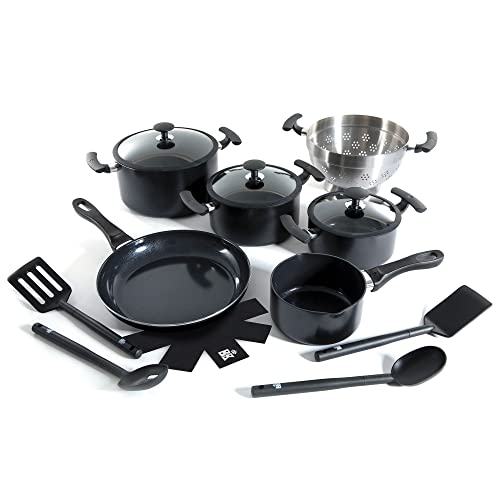 BK Vivid 14-delar köksredskap kastruller och stekpannor set med PFAS-fri keramisk non-stick beläggning, gryta, stekpanna, kastrull, lock, induktion, stay-coolt handtag, diskmaskinsäker, ugnssäker,