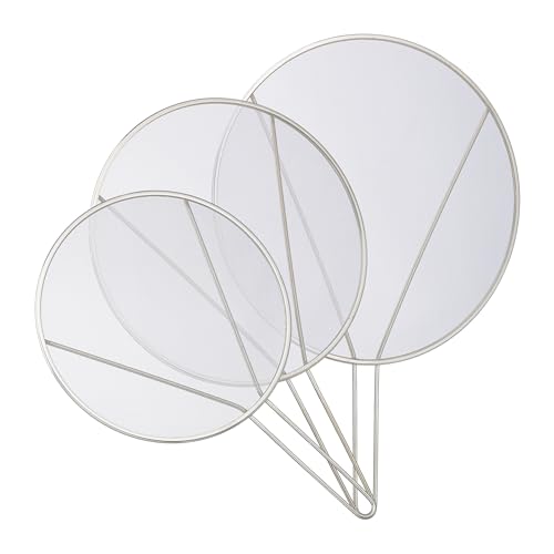 Relaxdays Stänkskydd för stekpannor, set om 3, rostfritt stål, diameter 25 och 29 & 33 cm, fettstänkskydd med handtag, silver