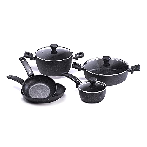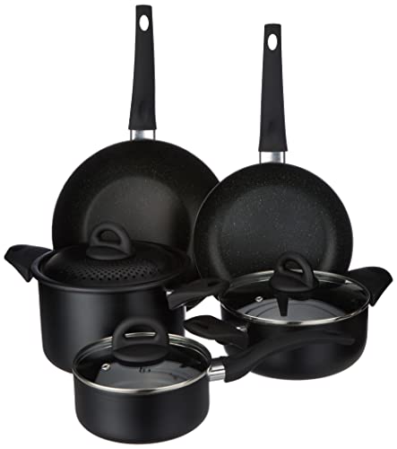 Tognana Rock In Black, kastruller & stekpannor batteri, set med 1 stekpanna, 1 pastaform, 2 grytor, 1 x pasta, 3 x genomskinliga lock, 8 stycken, aluminium, svart