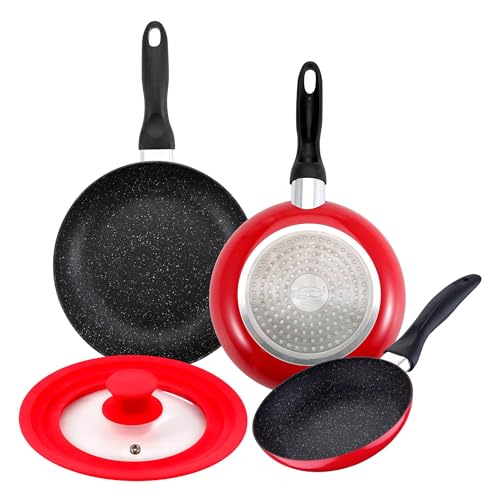 RIOVARM Non-stick beläggning stekpannor set induktion panneset med värmebeständigt handtag, granit, omelettpanna utan PFOA marmor köksredskapsset lämplig för olika typer av spisar 20 cm 24 cm 28 cm