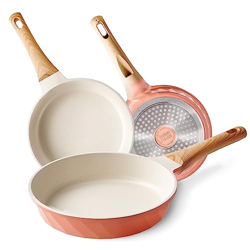 RIOVARM Keramik non-stick beläggning stekpannor set induktion panneset 20 cm 24 cm 28 cm med träkorn bakelithandtag hälsosamt köksredskap set utan PFOS, PFOA, PTFE äggpannor omelettpannor