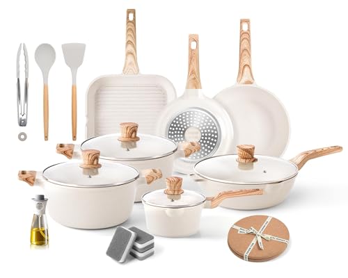 Ciarra Beyond kokkärl set non-stick kastruller och stekpannor set induktionshällar med lock inklusive 24 cm holländsk ugn 26 cm stekpanna 28 cm stekpanna 20 cm kastrull, kompatibel med alla spishällar
