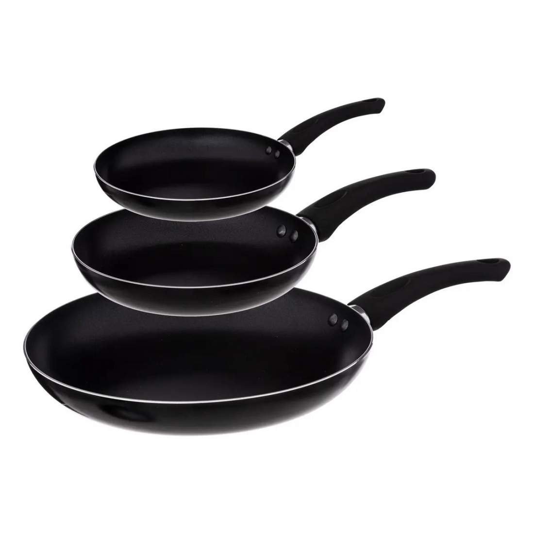 BRA Effektiv gjutna aluminium non-stick stekpannor, set med 3 20-24-28 cm Svart