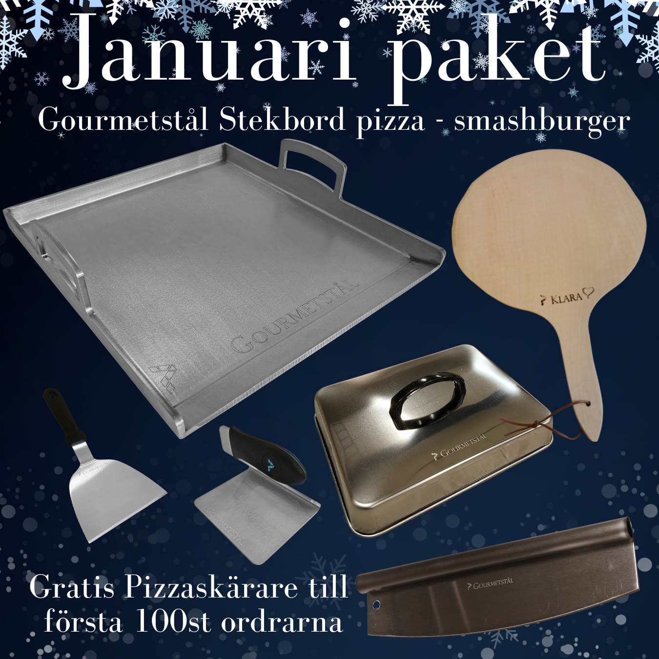Januaripaket! - Gourmetstål Stekbord, pizza, brödbak (Välj ditt paket här: Grundpaket Gourmetstål 34x39cm art 2042 + träspade + stekskrapa + gåva pizz