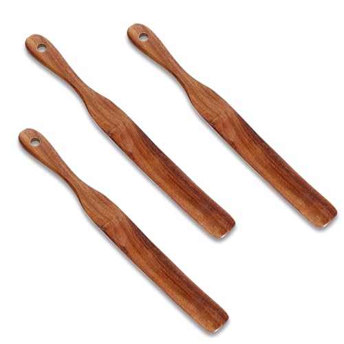 Stekspade trä 28 cm spårspatel omrörningsspatel robust teak för surdeg start matlagning bröddeg visp surdegspatel grytskrapa spatel omrörare (11,02 × 1,18 x 0,59 tum)