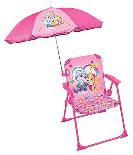FUN HOUSE 5XL.38.5xP Ø65 cm PAT'PATROUILLE flicka Stella Everest hopfällbar stol camping mått: H.38,5 XL.38,5 x P.37,5 cm + parasoll Ø 65 cm för barn, rosa