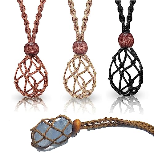 Floatdream 3 st Empty Stone Holder, Sten Halsband Med Justerbar Dragsko Bur, För Råsten, Diy (Nettopåse Storlek 30-35 mm), 3, Textur: Snodd