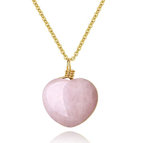 coai Kvinnor flickor rosenkvarts kärlek hjärta sten hänge halsband