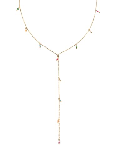 SINGULARU - Y mini sten färger halsband. stål med 18 kt guldpläterad och natursten. Damsmycken