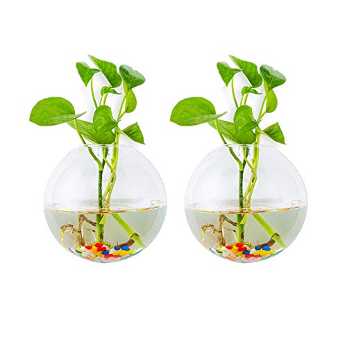 Glasseam Hängande blomlådor i glas 2 st sfärisk form växtkrukor Terrarium behållarvas med 2,12 oz färgglada stenar inomhus utomhus för hem, trädgård, kontor, bröllop