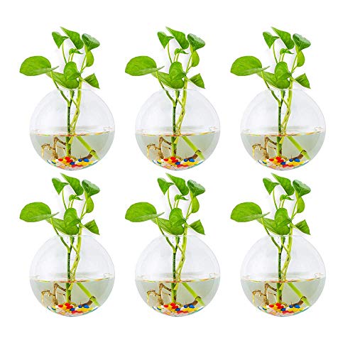 Glasseam Hängande blomlådor i glas 6 st sfärisk form växtkrukor Terrarium behållarvas med 6,36 oz färgglada stenar inomhus utomhus för hem, trädgård, kontor, bröllop