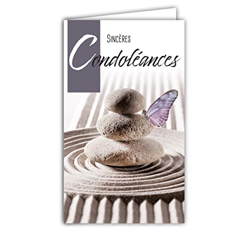 Afie 24-1028 Uppsatta kondoleanskort slutet format 95 x 160 mm med vitt kuvert - Cairn Montjoie stenar staplade sandstenar zen trädgård vila själ