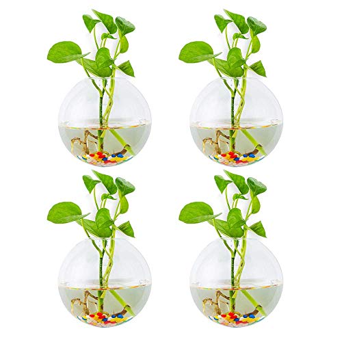 Glasseam Hängande glasplantor 4 st sfärisk form växtkrukor terrarium behållare vas med 4,24 oz färgglada stenar inomhus utomhus för hem trädgård kontor bröllop