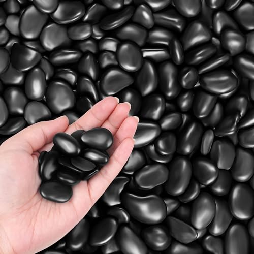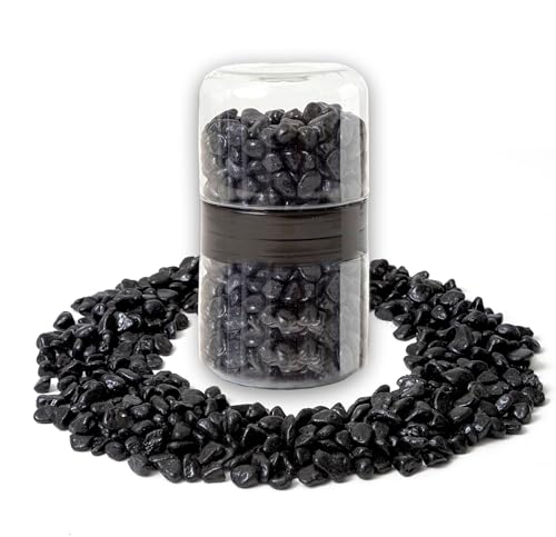 Winter Shore 1,35 kg Dekorativa Svarta Stenar - 2,5-3 cm Dekorativa Stenar för Krukväxter, Akvarium, Trädgård, Terrarium, Suckulentkruka, Vasfyllnad - Siktade och Polerade Naturliga Akvariumstenar