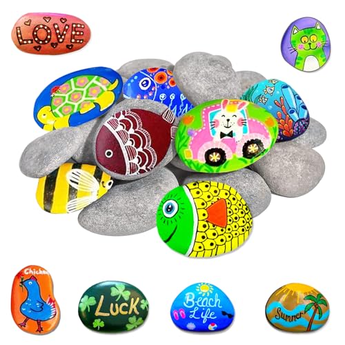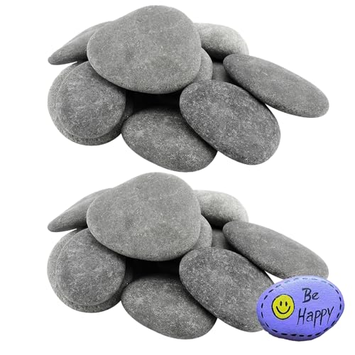FAAING 24 stycken platta stenar för målning, 5–8 cm släta stora kiselstenar naturliga stenar dekorativa stenar natursten flodsten för mandala målning, trädgård, blomkrukor, akvarier