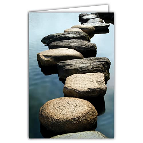 Afie 68-4013 vitt innerkort med kuvert - vägar stenar på vattnet trädgård zen meditation vila positiva energier naturkrafter för dig tack så mycket mod ärliga kondoleanser