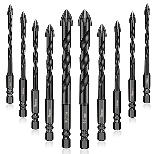 ASNOMY 10 st kakelborr, betongborr, glasborr, keramikborr med sexkantsskaft, stenborr, glasborrsats, kakelborrsats för glas, kakel, spegel, betong
