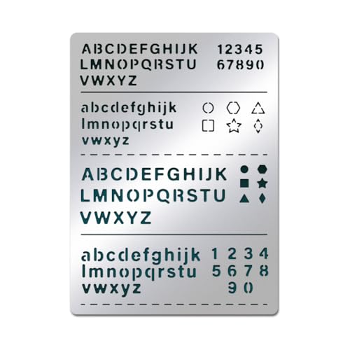 BENECREAT Metallbokstavstenciler, övre och små bokstäver, pentagram, trianglar rostfritt stål stencil, loggboksverktyg för målning, träbränning, snideri och bokstäver, 19 x 14 cm