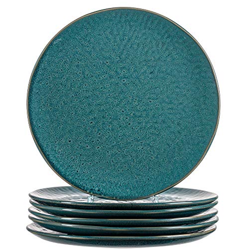 Leonardo Matera keramiktallrikar set med 6 st, diskmaskinssäkra mattallrikar, mattallrikar med glasyr, 6 runda stengods tallrikar, Ø 27 cm, blå, 018547