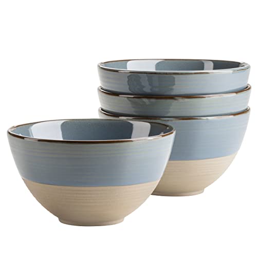 MÄSER Frots, frukostskålar, set med spräcklig glasyr och ekologisk formgivning, 4 keramikskålar i ett spännande vintageutseende, stengods, blå
