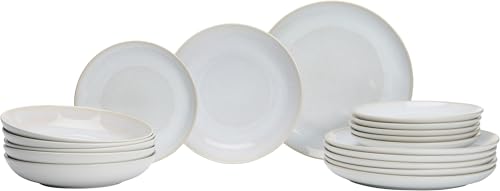 GBhome Middagsservis i stengods för 6 personer, 18 delar, reaktiv glasyr, handgjorda tallrikar och skålar, repbeständig servis, set för diskmaskin och mikrovågsugn (cappuccino, set med 18)