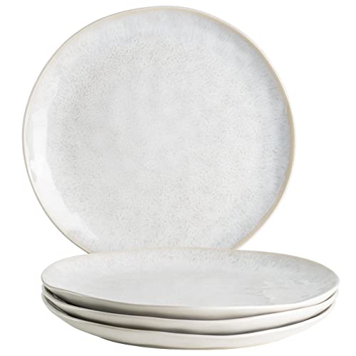 MÄSER Frozen, moderna mattallrikar set om 4 med spräcklig glasyr och organiska former, 4 stora platta mattallrikar av keramik i ett spännande vintageutseende, stengods, vit