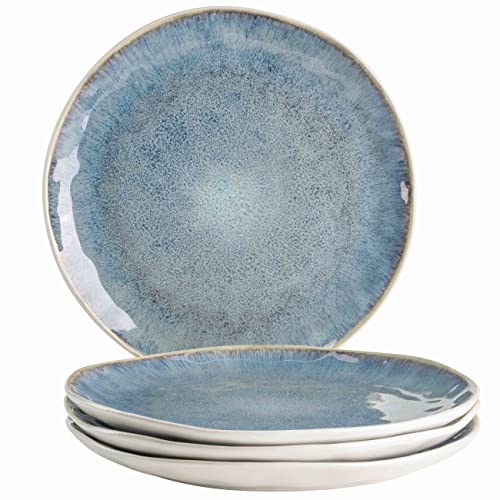 MÄSER Frozen, moderna mattallrikar set om 4 med spräcklig glasyr och organiska former, 4 stora platta mattallrikar av keramik i ett spännande vintageutseende, stengods, blå