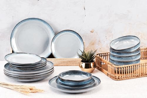 Ritzhoff & Breker Portofino tallriksset 18 delar, kombiservis med färggradient, 6 x mat-/sopp- och desserttallrikar, skandinavisk design med reaktiv glasyr, stengods, blågrå
