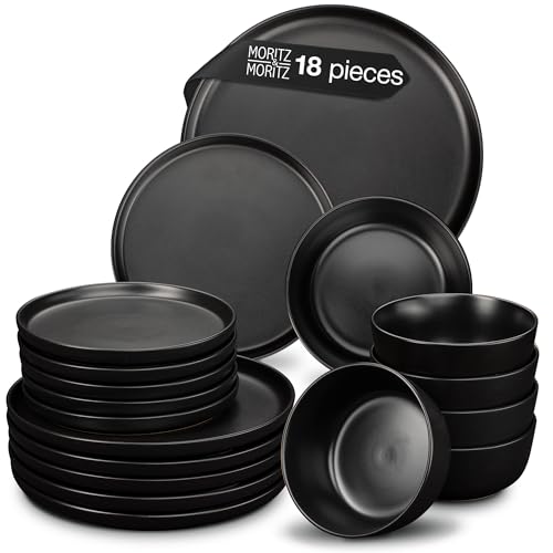 Moritz & Moritz NORDIC Porslinsset 6 personer 18 delar Svart - elegant tallriksset av högkvalitativt stengods - servis set med 6 x middagstallrikar, 6 x desserttallrikar, 6 x sopptallrikar