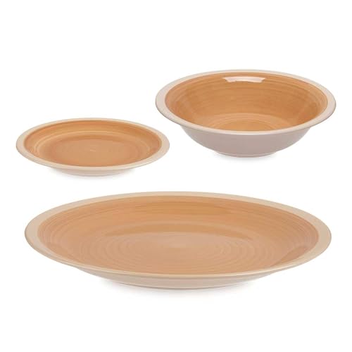 Homikit servis 6 personer, 18-delad servis i stengods, servis i reaktiv glasyr med skål och tallrikar, reptålig, mikrovågssäker och diskmaskinssäker,Jupiter Beige