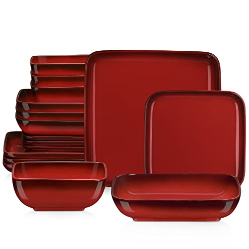 Gibson Soho Lounge 131173.16R fyrkantig reaktiv glasyr stengods servis, matt röd