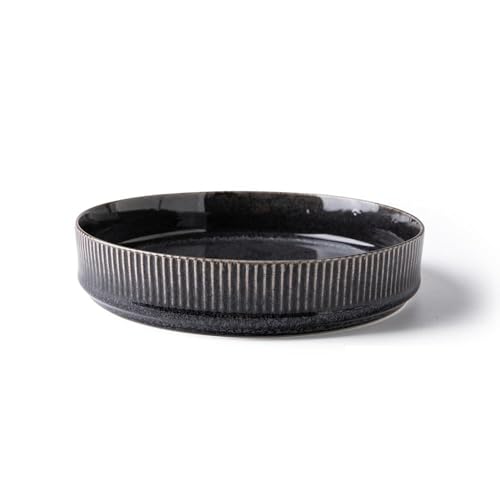 6 x djupa tallrikar av stengods i Ibiza-serien, med mycket bra testresultat – ädla pastatallrikar, djupa sopptallrikar – för 6 personer – servis för 6 personer, mattallrikar, svart med salviagrön