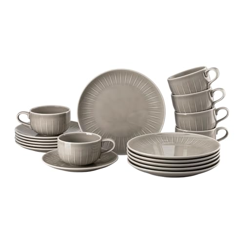 Rosenthal Joyn Grey set 18 delar Kombinerad service, stengods, porslin, servis, kaffeservice, frukosttallrik, koppar, grå