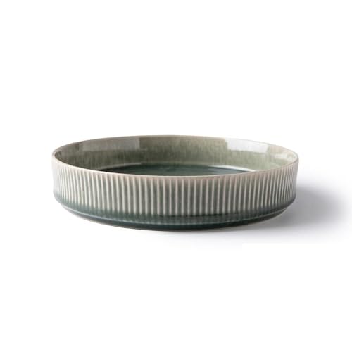 GBhome Middagsservis i stengods för 4 personer, 12 delar, reaktiv glasyr, handgjorda tallrikar och skålar, repbeständigt servis, set för diskmaskin och mikrovågsugn, tystgrön