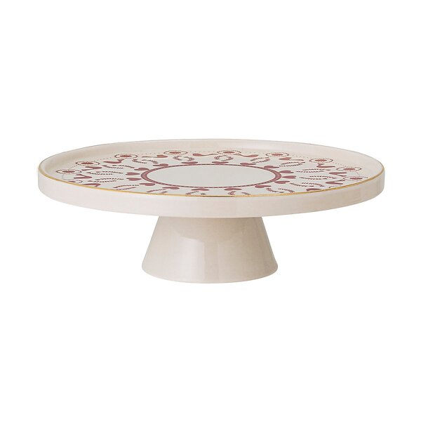 Bloomingville Jolly tårtfat stengods Ø26 cm Vit-röd