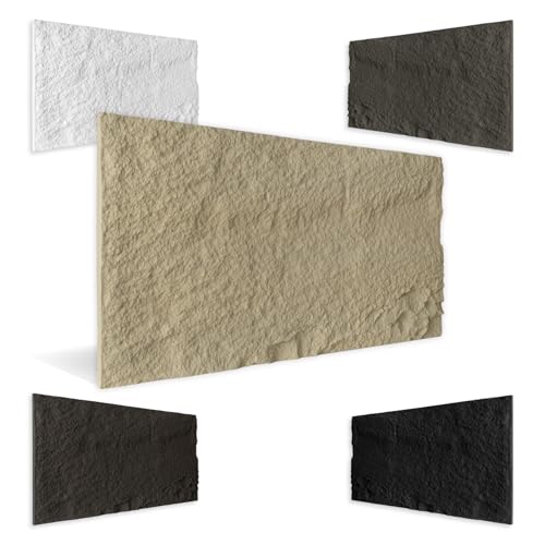 HEXIM Plattor med stenutseende, 120 x 60 cm, PU-väggbeklädnad, 0,73 kvm, 3D-paneler, krossad sten, dekoration, väggpaneler, stenplattor, stenvägg, för vardagsrum och innervägg (A002-15 Beige)