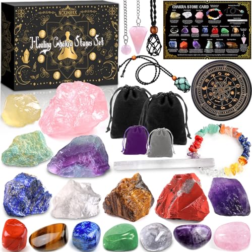 NCKIHRKK Kristallläkande stenset, Chakrastenar + kristaller naturliga, 21 st Ädelstenar Helande stenar Mineralstenar med tygpåse, vattenstenar för meditation, kristallläkning, energiläkning