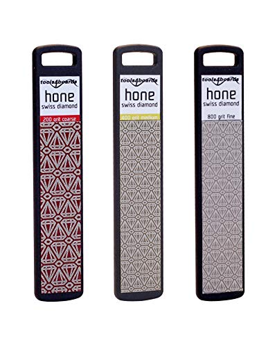 Tools4Boards Hone Trio skidor & snowboard schweizisk diamantfil stenset (3 delar) inkluderar 3 mest använda korn (röd grov 200, gul medium 400, vit fin 800) extra stor diamantyta 95 mm x 20 mm