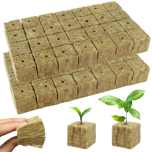 HOMURY Stenull kub rockwool kube: 100 stycken stenull odling rund stenull odlingskuber stenull kub hydroponic för jordlös odling, sådd, klonväxter, hydroponisk odling