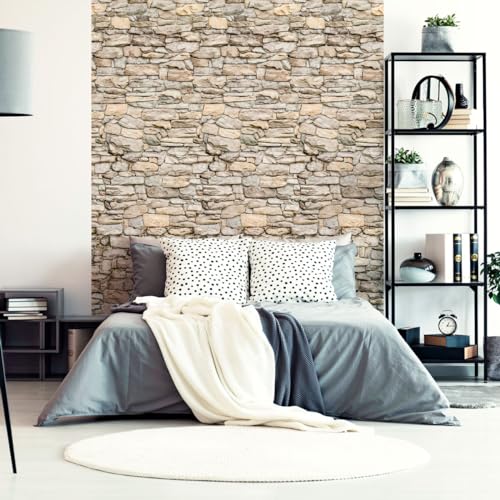 Ambiance Sticker Förlimmad non-woven tapet jätte fresker - dekorativ självhäftande stenvägg - H 300 x L 60 cm