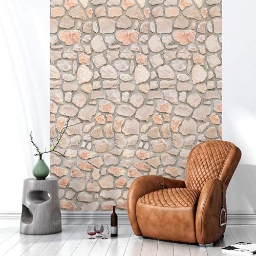 Runa Art Icke-vävd tapet 396 x 280 cm 3D-effekt stenvägg | väggdekoration vardagsrum sovrum | tysk tillverkning | beige 9082012a