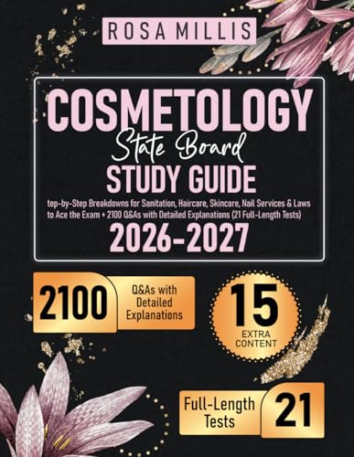 Cosmetology State Board Study Guide: Step-by-Step Breakdowns for Sanitation, Haircare, Skincare, Nail Services & Laws to Ace the Exam + 2100 Q&As with Detailed Explanations (21 Full-Length Tests)