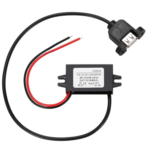Greluma 1 Styck Vattentät DC-DC 12V till 5V 3A-omvandlare, USB Step Down Buck Converter-strömadapter, med skruvhål för panelmontering