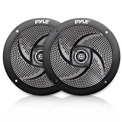Pyle 4 Inch Dual Marine Speakers - Waterproof and Weather Resistant Outdoor Audio Stereo Sound System with Polypropylene Cone, Cloth Surround and Low Profile Design - 1 Pair (Black)