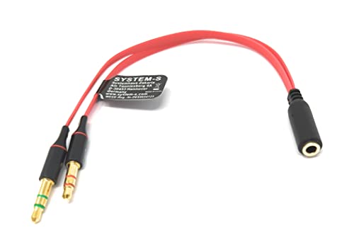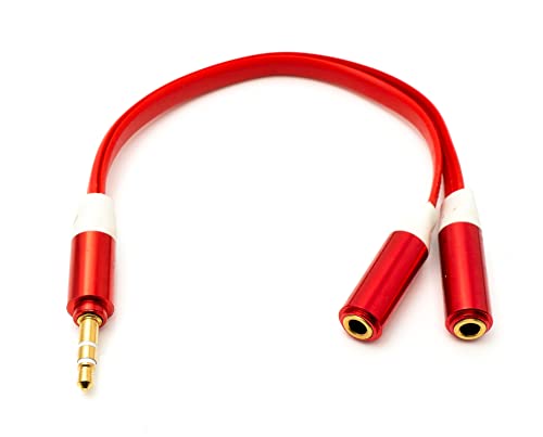SYSTEM-S Audio Y-kabel 20 cm stereo AUX-uttag 3,5 mm kontakt till 2 x uttag platt i rött