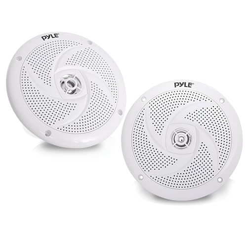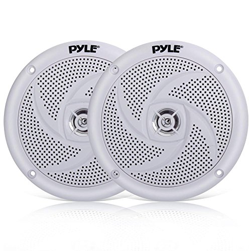 Pyle 5.25 Inch Dual Marine Speakers - 2 Way Waterproof and Weather Resistant Outdoor Audio Stereo Sound System with 100 Watt Power, Polypropylene Cone and Cloth Surround - 1 Pair (White)