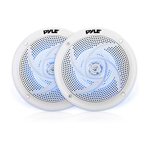 Pyle Marine Speakers - 5.25 Inch 2 Way Waterproof and Weather Resistant Outdoor Audio Stereo Sound System with LED Lights, 180 Watt Power and Low Profile Slim Style - 1 Pair - PLMRS53WL