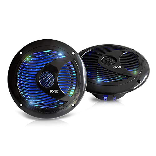 Pyle 6.5” Dual Marine Speakers - IP44 Waterproof and Weather Resistant Outdoor Audio Stereo Sound System with Built-in Led Lights, 150 Watt Power and Polypropylene Cone - 1 Pair - PLMR6LEB (Black)
